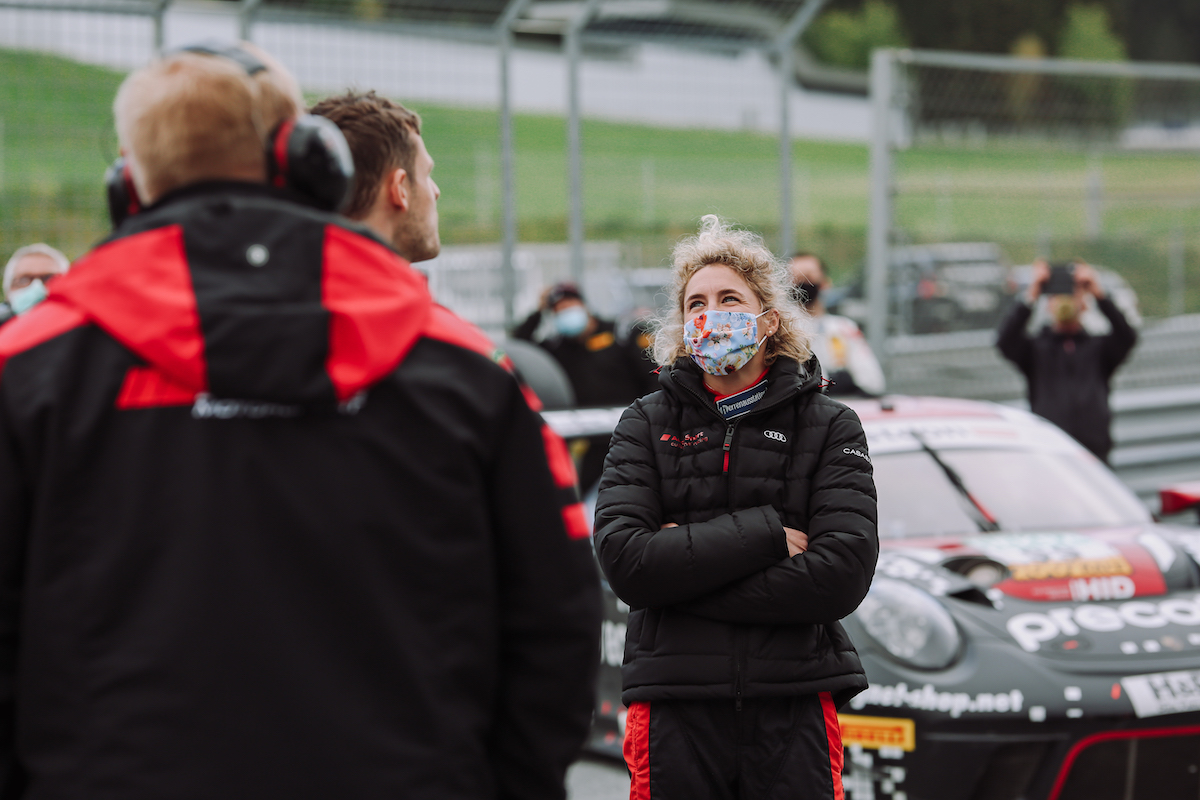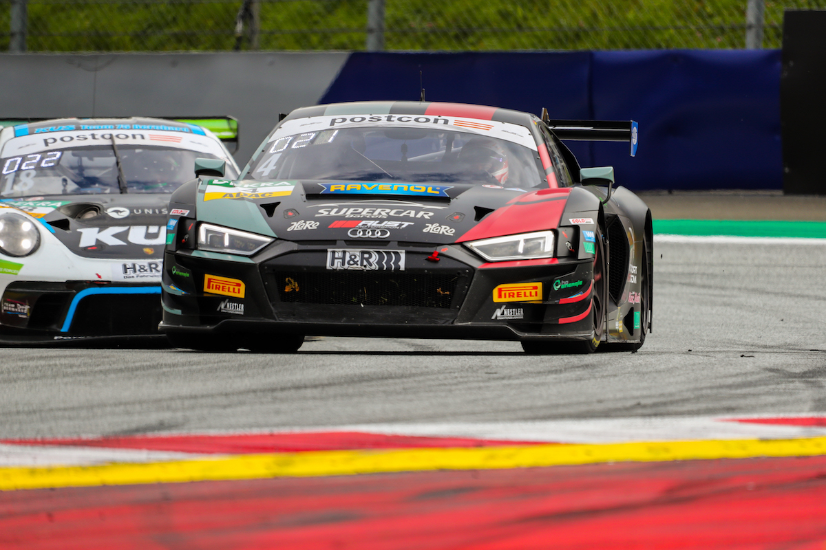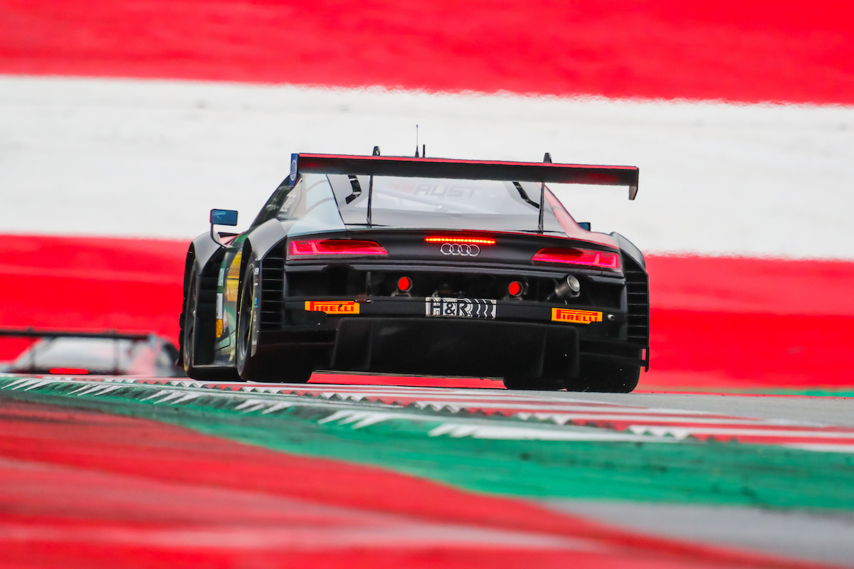 Dessen ungeachtet gelang es Aust Motorsport an diesem Wochenende das erste, lang ersehnte Highlight auf dem Red Bull Ring zu setzen. Im ersten Qualifying kämpften Maximilian Hackländer und Rahel Frey um die Startplätze für das erste Rennen. Am Ende starteten die beiden Aust-Audis auf den Positionen 19 (Frey/von Danwitz) und 26 (Hackländer/Rogivue) in das erste Rennen des Wochenendes. Beide Audis kämpften im Rennen über 60 Minuten und der Audi mit Maximilian Hackländer und Nikolaj Rogivue konnte sich weit nach vorne kämpfen und die Ziellinie auf Position 14 überqueren. Hendrik von Danwitz beendete das erste Rennen im Audi mit der Startnummer 4 auf Platz 25.