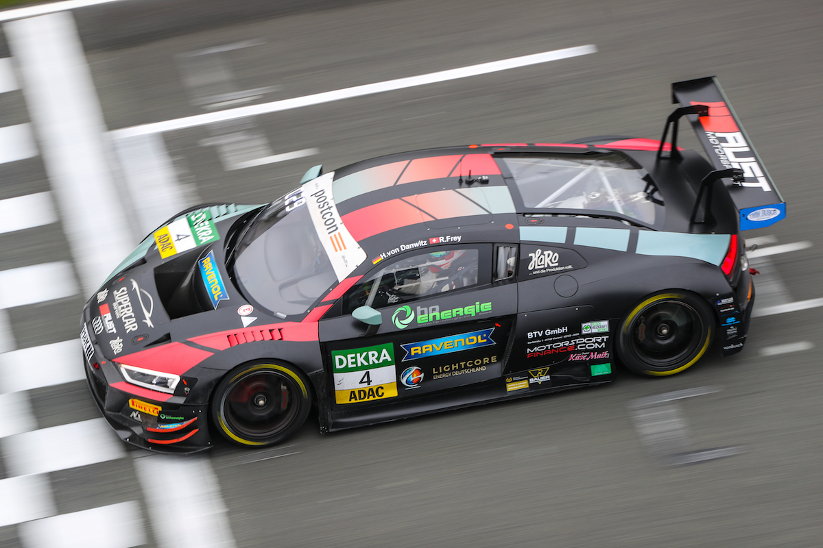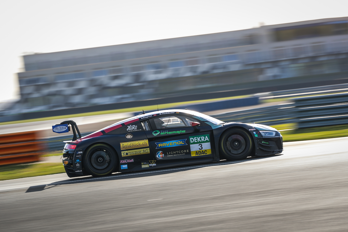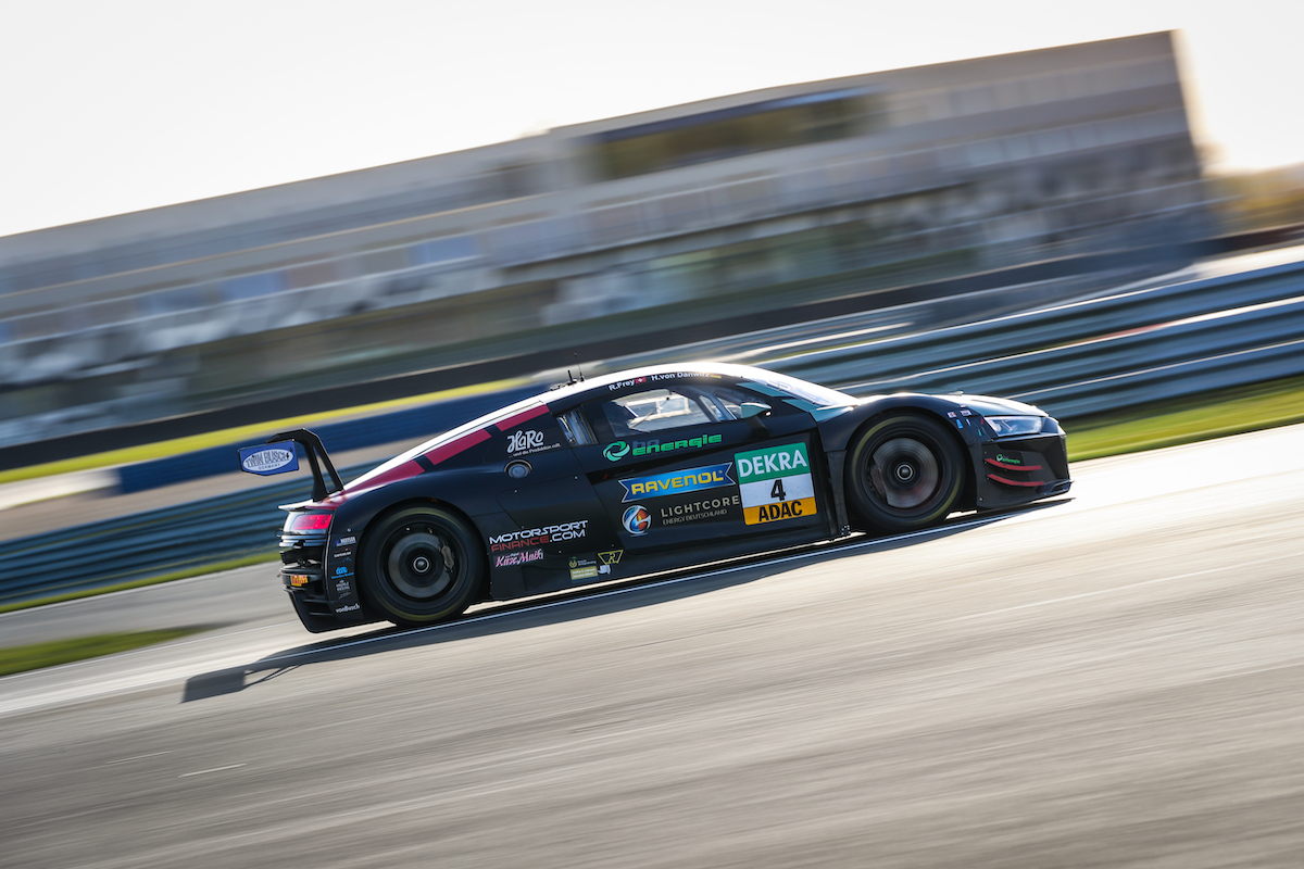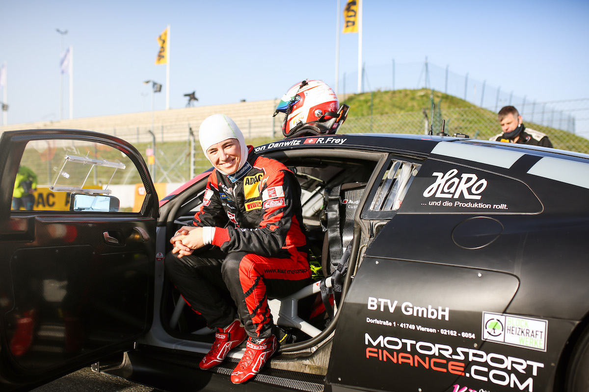 Bei deutlich besseren Wetterbedingungen als am Lausitzring, aber dennoch kühlen Temperaturen, starteten Hendrik von Danwitz und Nikolaj Rogivue am Samstagmorgen in das erste Qualifying. Am Ende des 30-minütigen Zeittrainings fuhr Rogivue (Startnummer 3) auf Platz 27 und von Danwitz (Startnummer 4) auf Platz 30. Das erste Rennen war von drei Safety-Car-Phasen geprägt. Aufgrund eines technischen Defekts des vor Nikolaj Rogivue fahrenden Rennwagens, trat Flüssigkeit aus und Rogivue kollidierte mit seinem Konkurrenten und musste das Rennen in der elften Runde vorzeitig beenden. Hendrik von Danwitz konnte das Fahrzeug nach der ersten Rennhälfte an Rahel Frey übergeben. Die Schweizerin beendete das Rennen auf Platz 24.